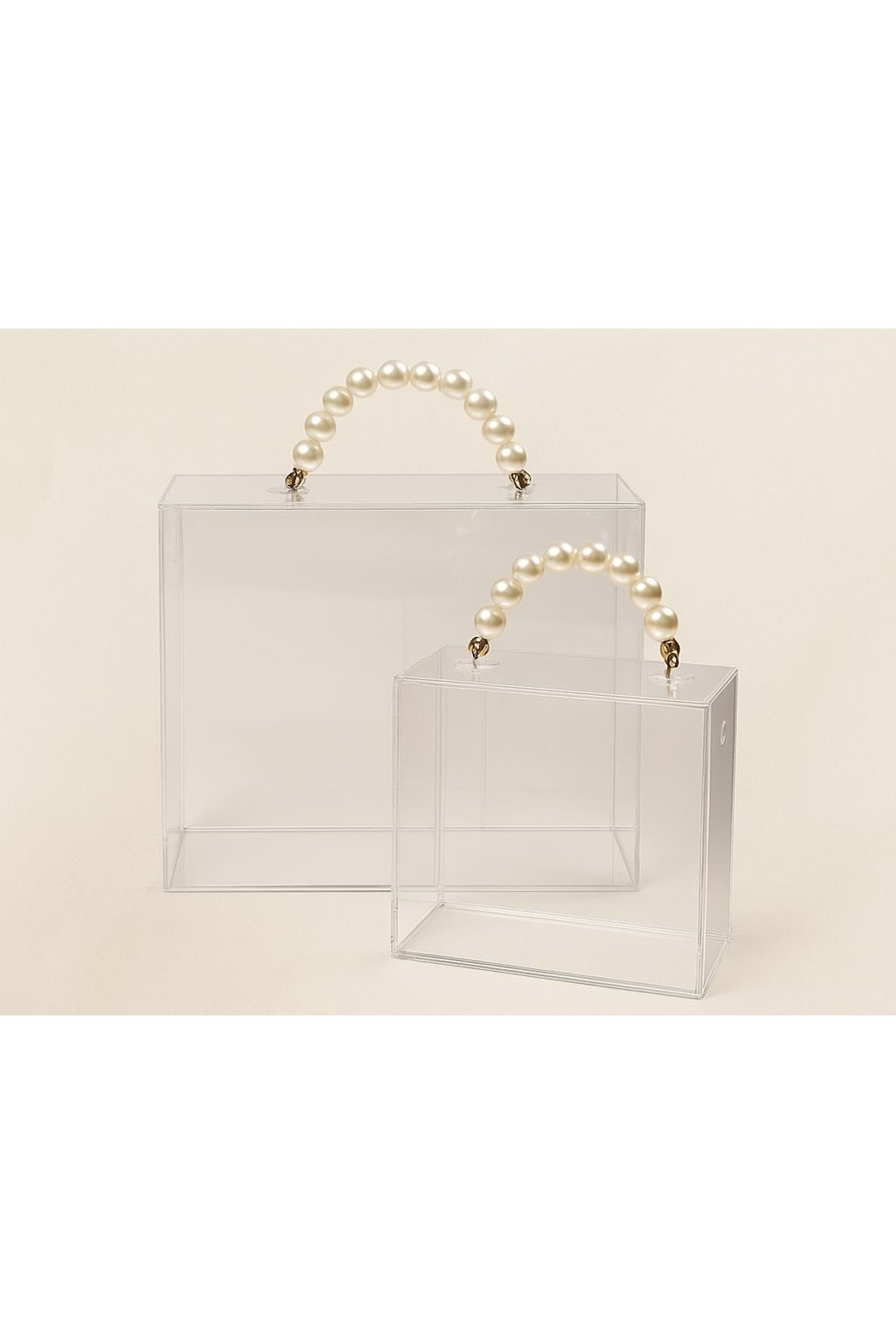 İnci Saplı Pleksiglass Kutu Buket Taşıma Çantası 2 li Set YK-336