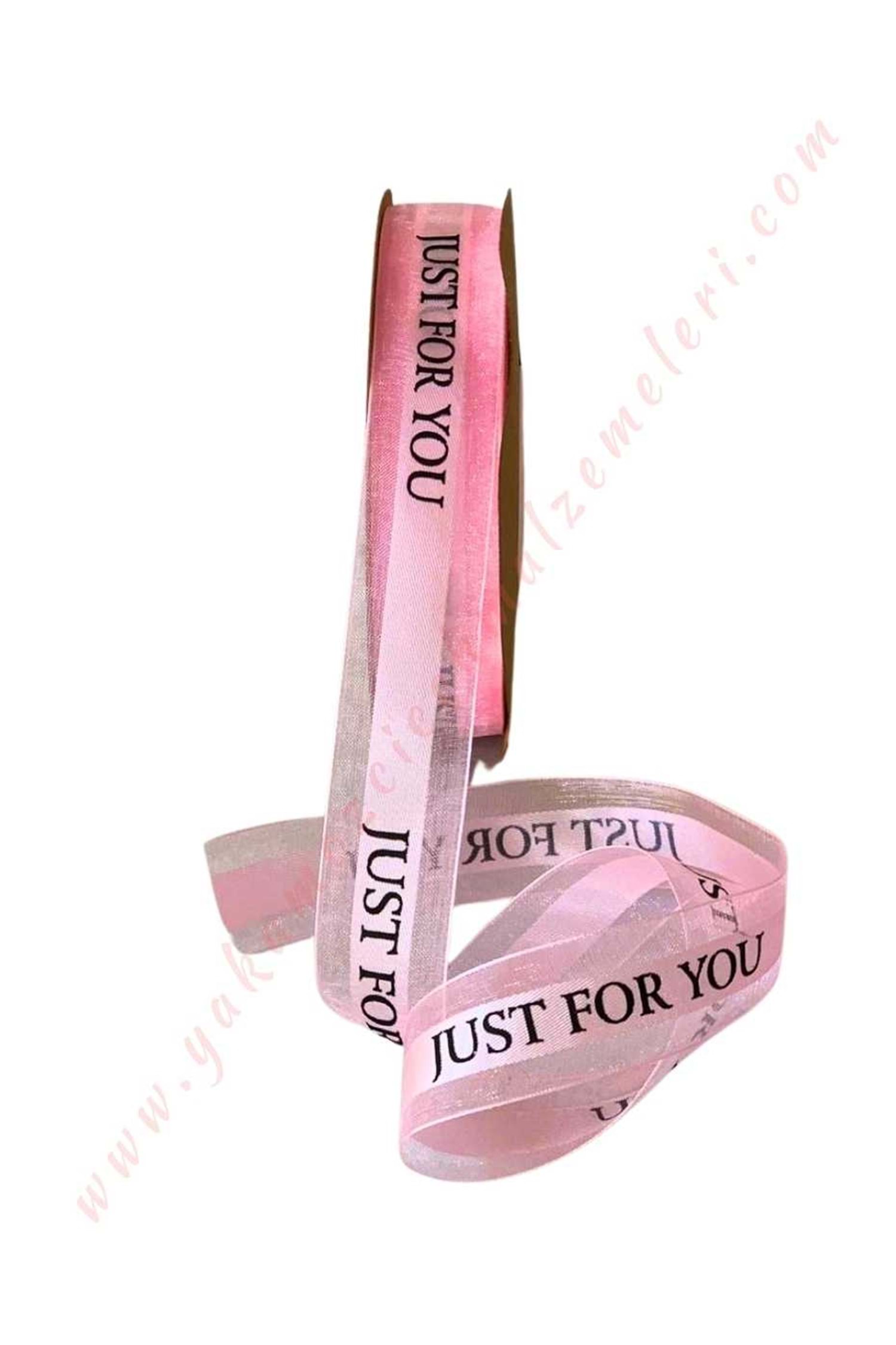 Just For You Yazılı Kurdele 2,5 Cm 38 Metre YK-403 - Pembe