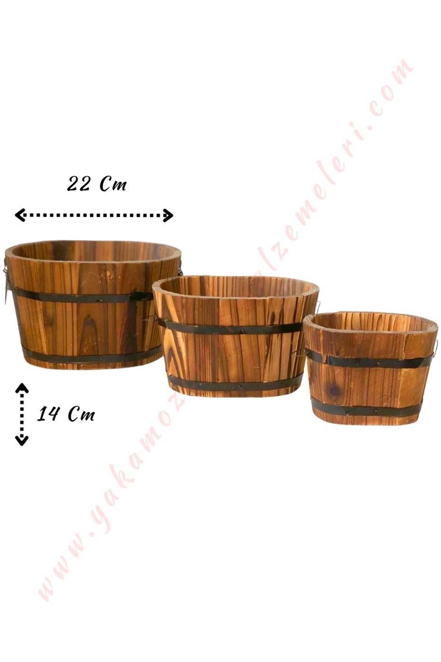 Saksı Görünümlü Ahşap Sepet 3 lü Set YK-410