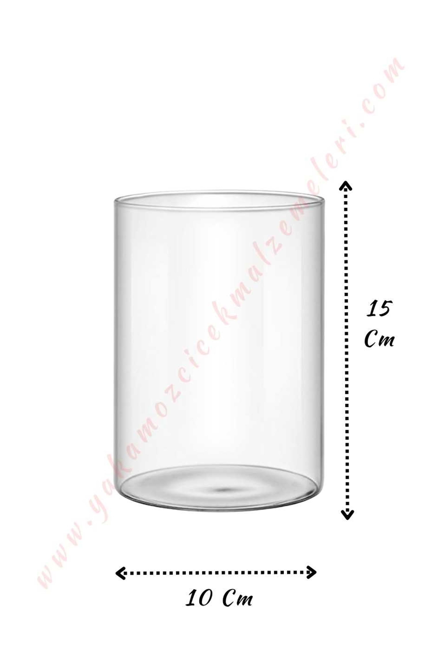10 cm Çapında ve 15 cm Yüksekliğinde İnce Silindir Cam Vazo - 12'li Koli