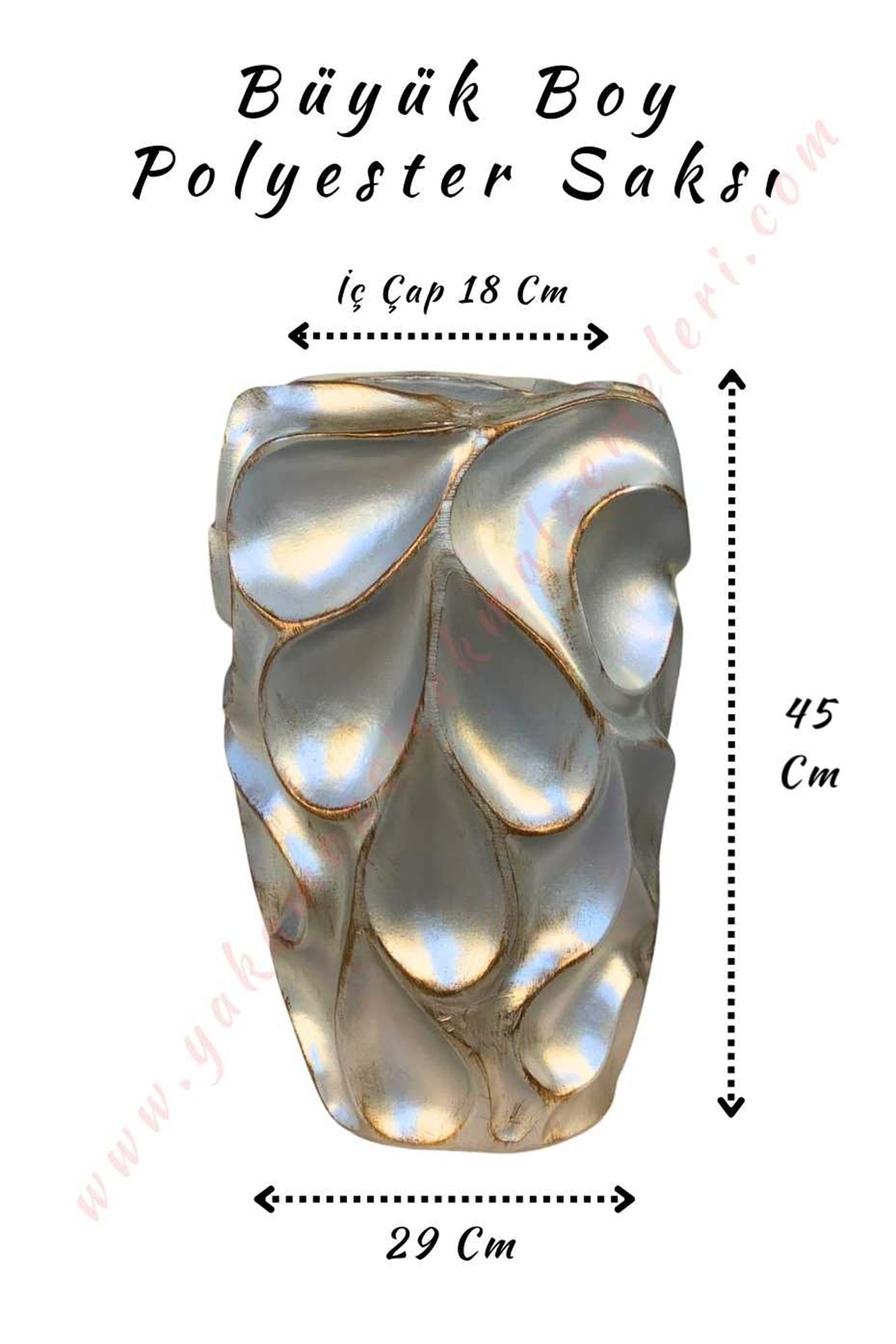 Büyük Boy Polyester Saksı Dalgalı Model Çap 29 Cm Yükseklik 45 Cm - Gri