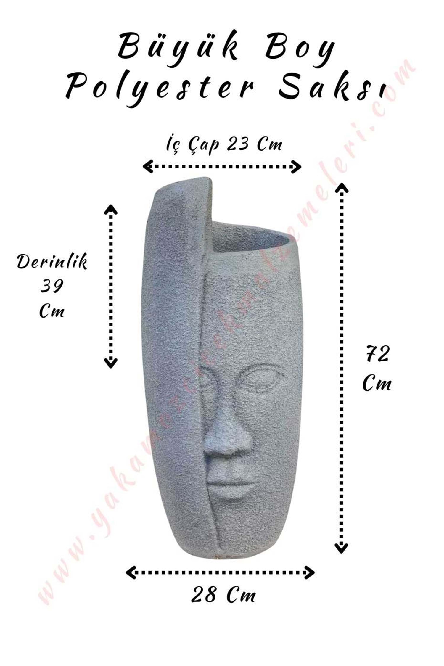 Büyük Boy Polyester Saksı Yüz Kabartmalı Çap 28 Cm Yükseklik 72 Cm