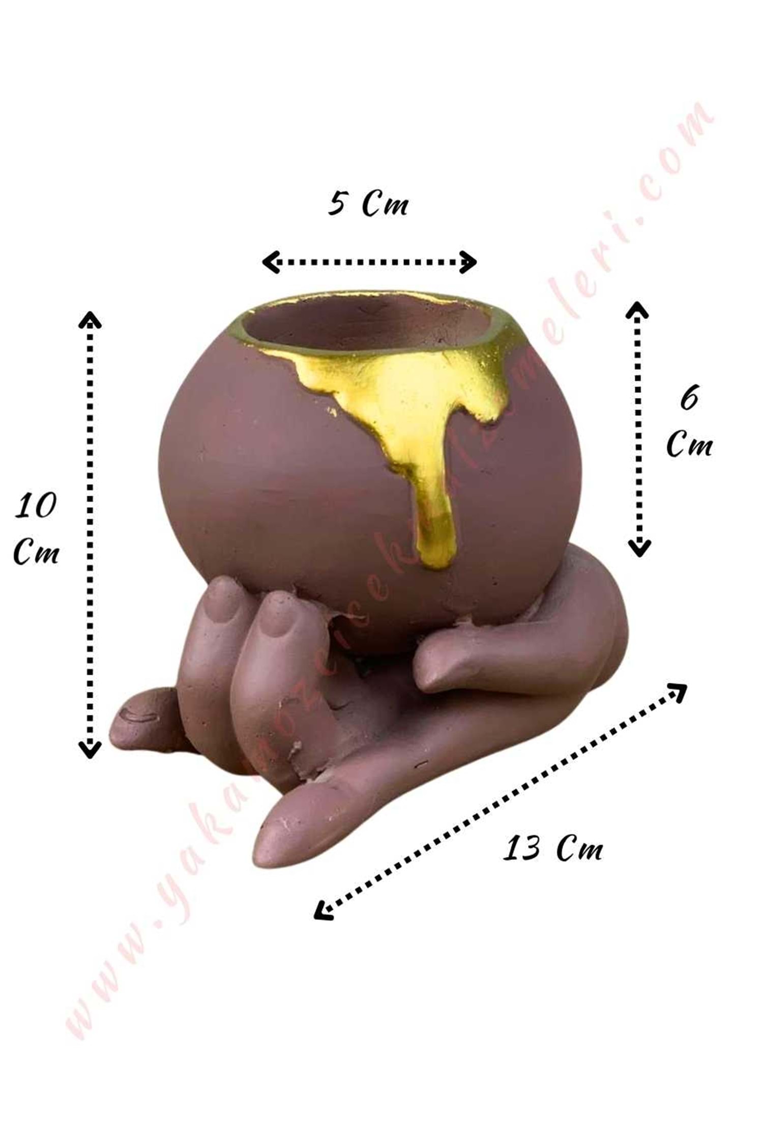 Dünya Tutan El Beton Skulent Kaktüs Saksısı 10*13 Cm Saksı Çapı 5 Cm Derinlik 6 Cm - Kahverengi