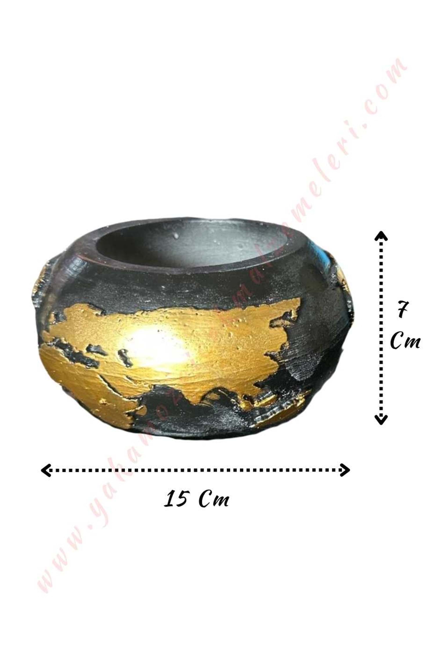 Dünya Desenli Beton Skulent Kaktüs Saksısı Siyah