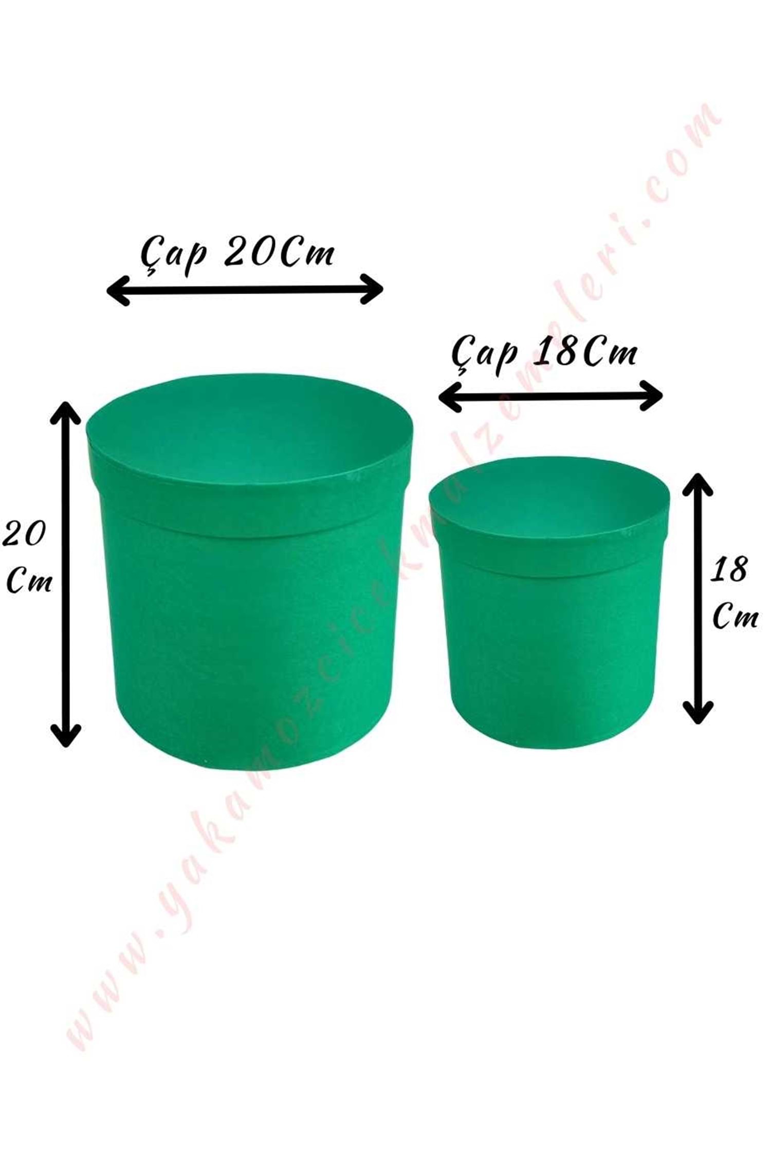 2 li Silindir Kutu Çiçek Çikolata Hediye Kutusu ÇAP 20 - Yeşil