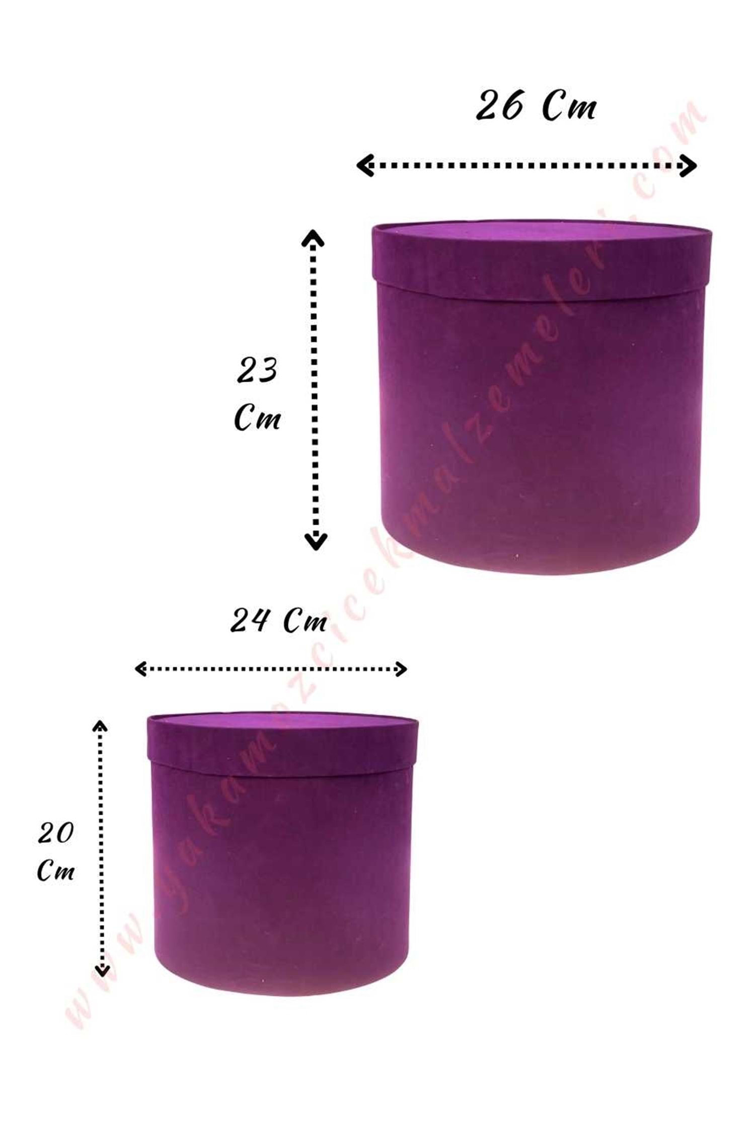 İkili Silindir Kutu Kadife Çiçek Çikolata Hediye Kutusu Çap 26 Cm - MOR