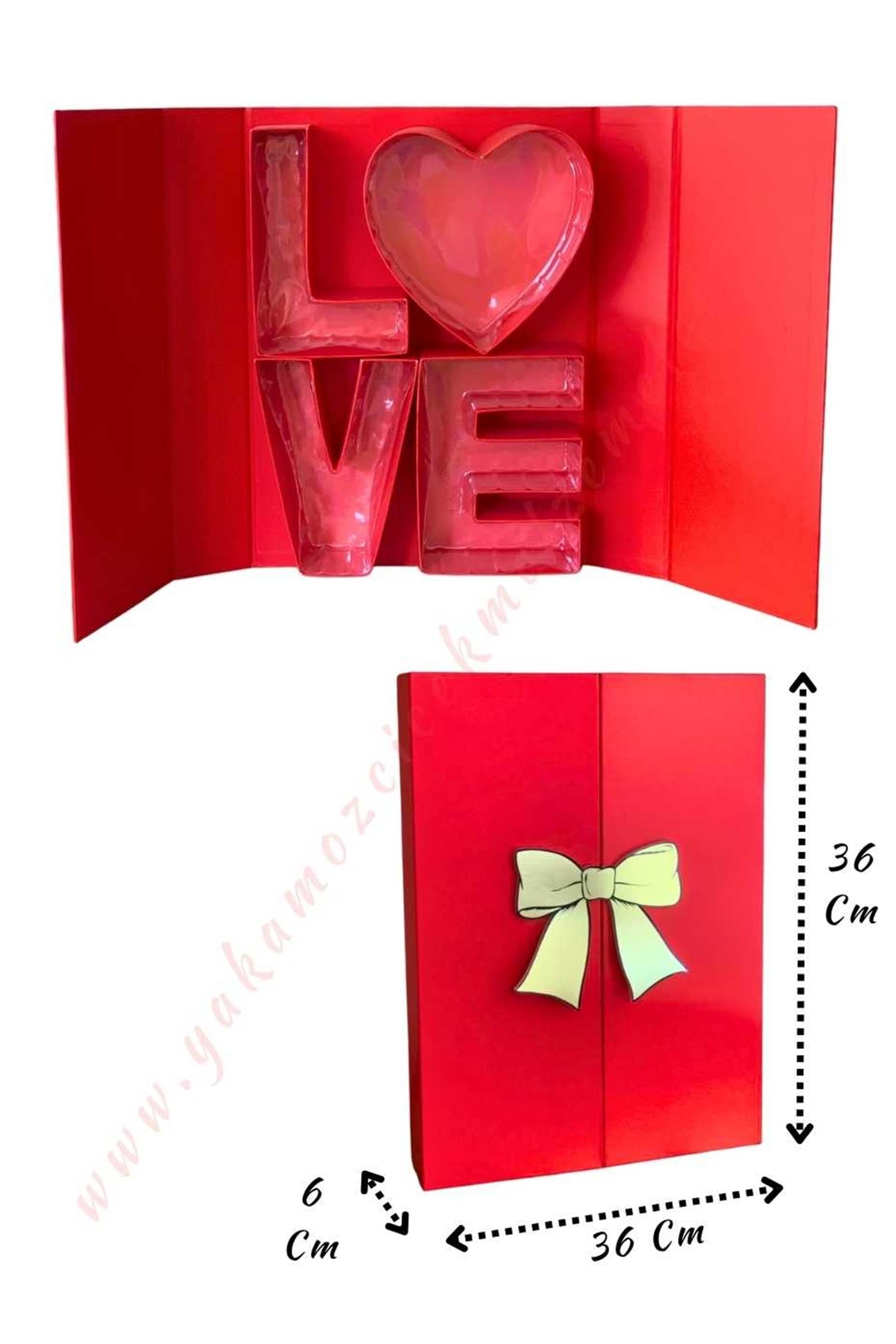 Love Yazılı Kapaklı Çiçek Çikolata Hediye Kutusu YK-333 - Kırmızı