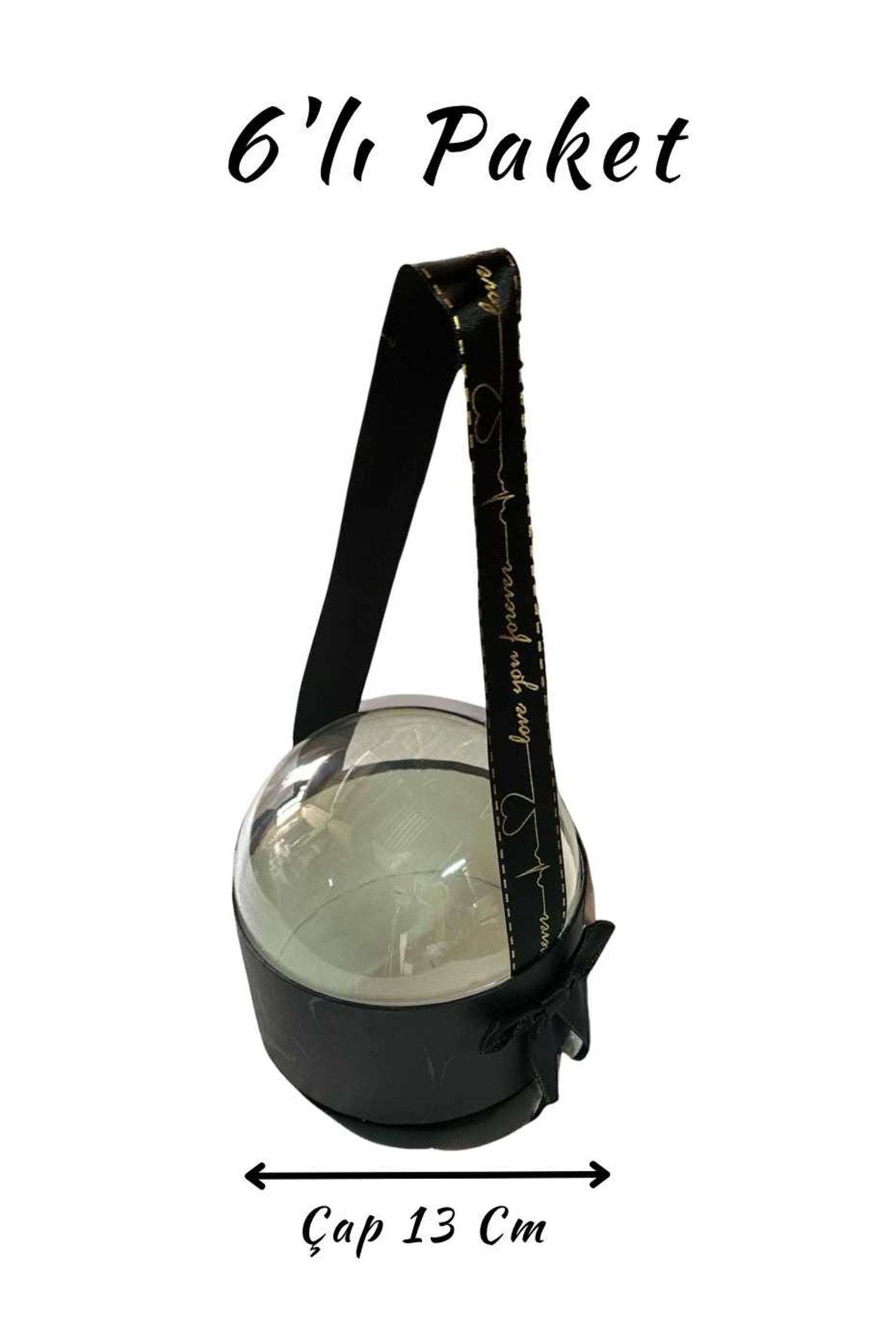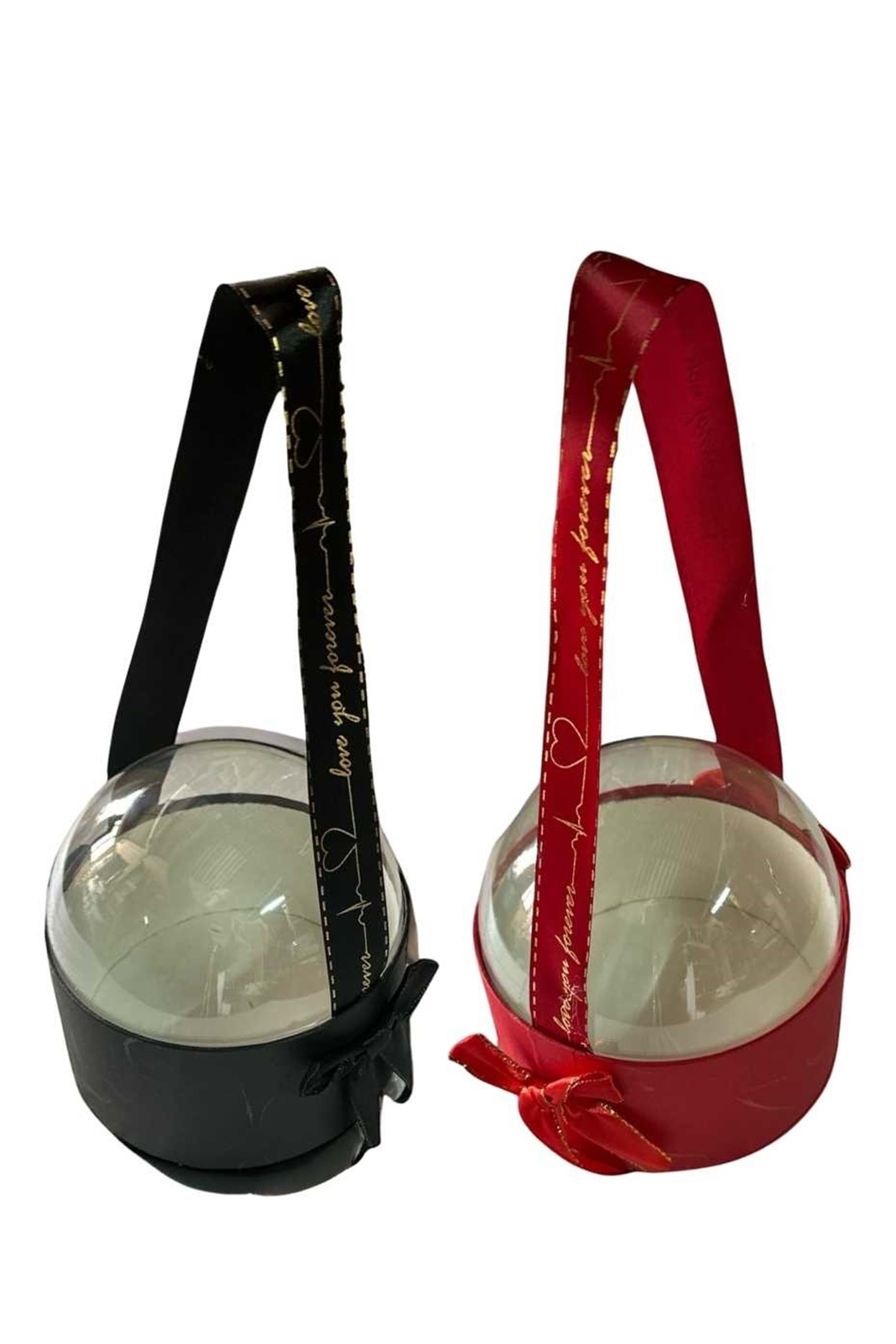 Dekoratif tasarımıyla dikkat çeken şeffaf kubbe kapaklı silindir şeklinde kutu, hem şık bir çiçek kutusu hem de özel günler için ideal bir çikolata kutusu olarak kullanılabilir.