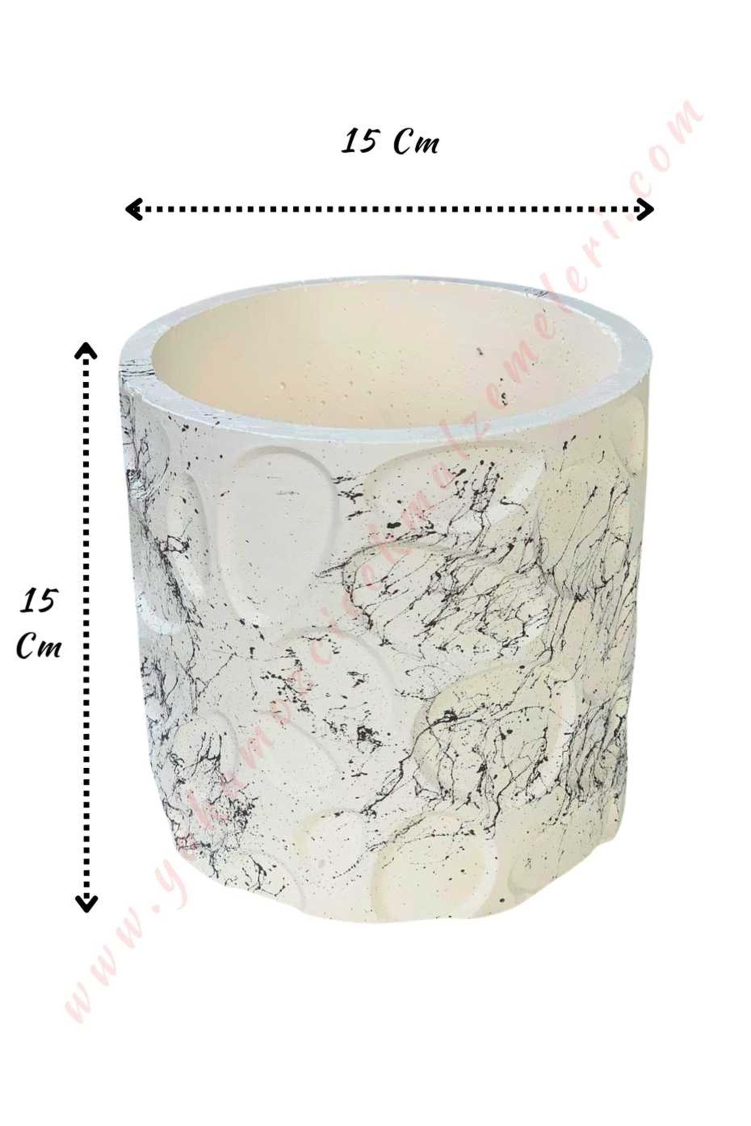 Kabartmalı Seramik Orkide Saksısı 15*15 Cm - Gri-Beyaz