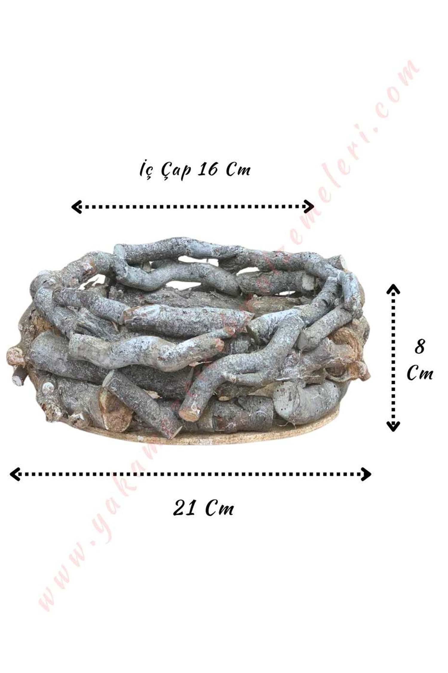 Ağaç Dallarından Yapılmış Yuvarlak Sepet - Saksı - Gri