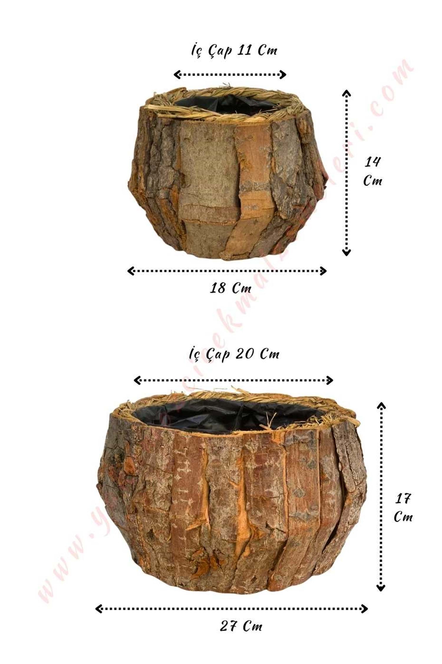 Ağaç Kabuğu Saksı 2 li Set YK-157