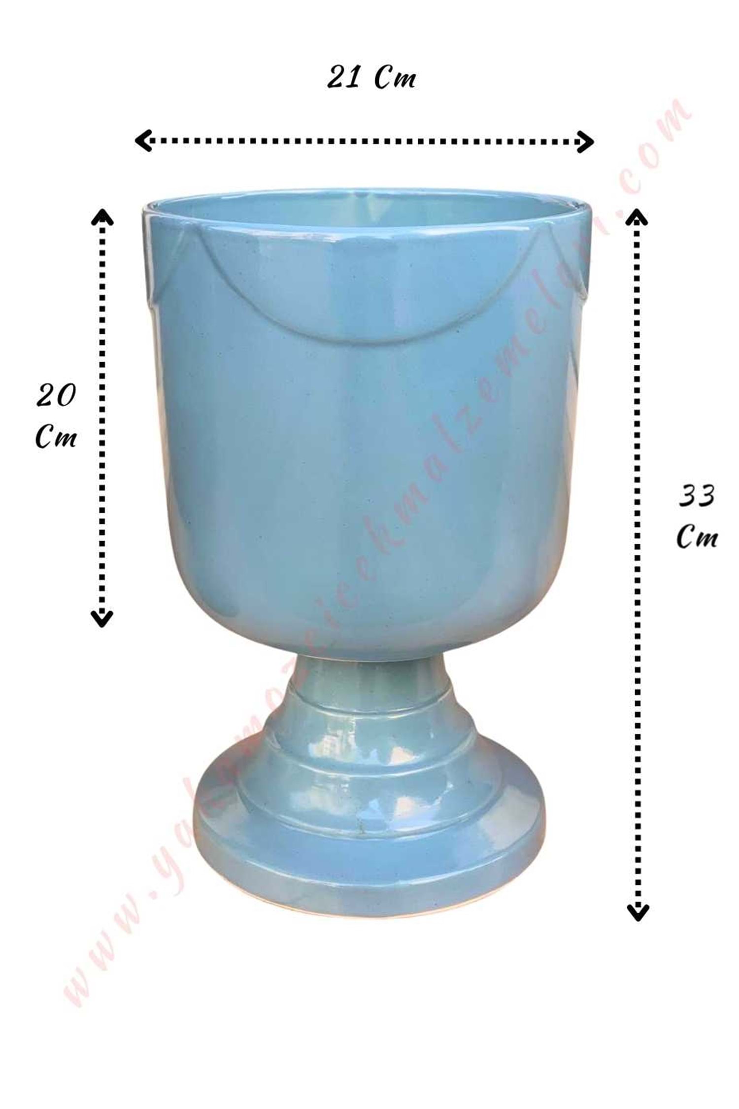 Ayaklı Büyük Boy Seramik Kupa Saksı Çap 21 Cm Yükseklik 33 Cm - Açık Mavi