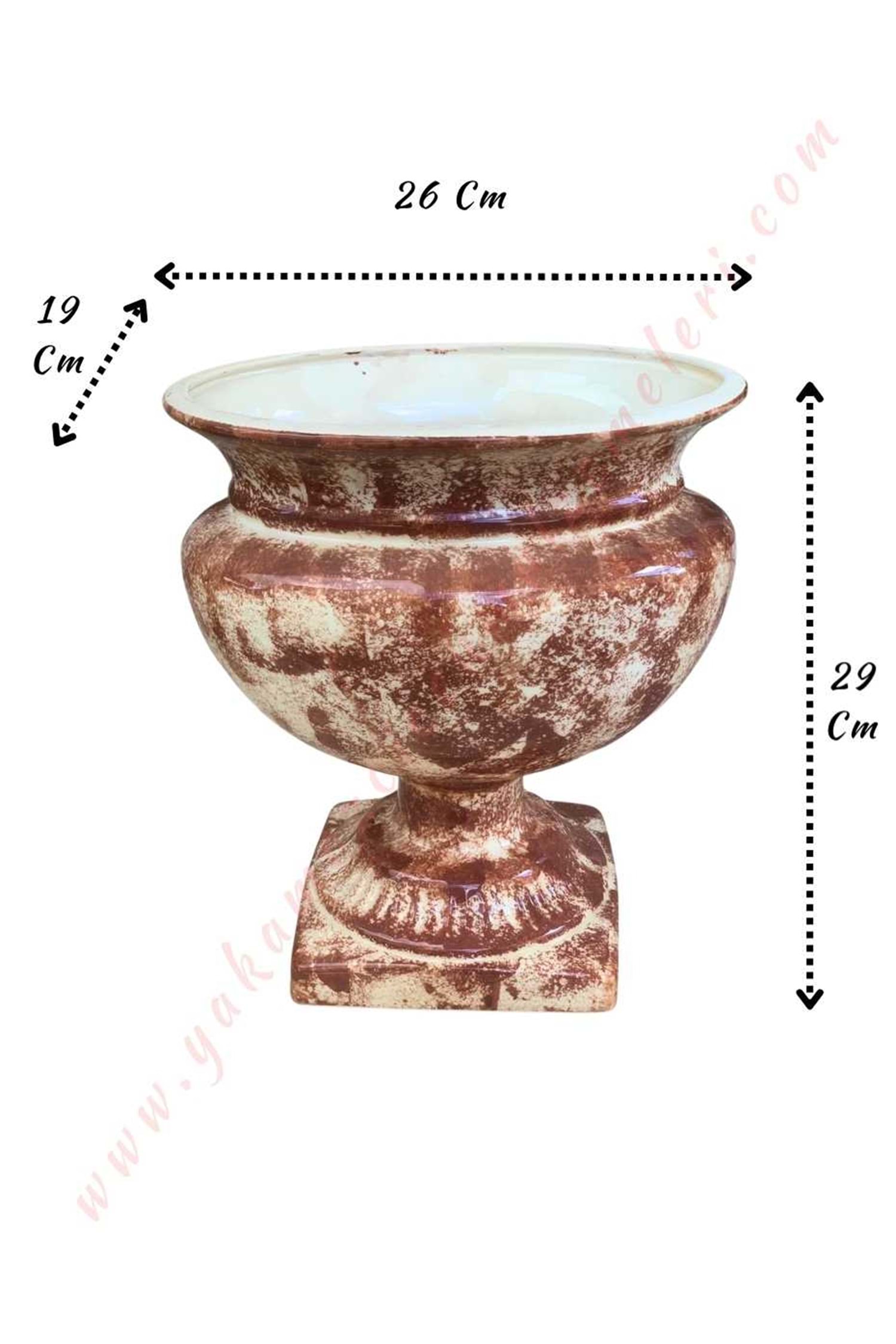 Ayaklı Seramik Antik Oval Kupa Vazo 26*29 Cm - Açık Kahverengi