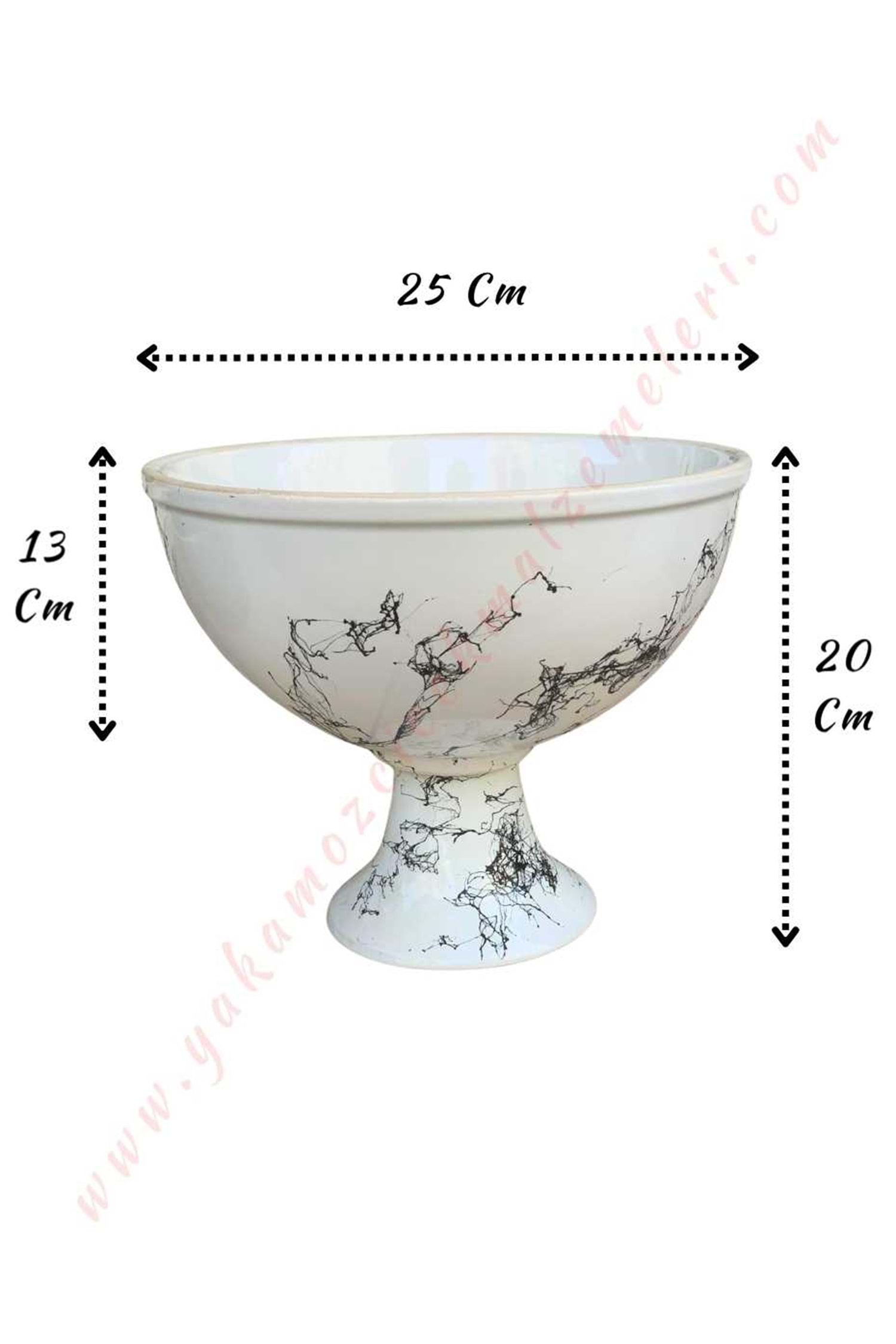 Ayaklı Seramik Büyük Boy Saksı Kupa Çap 25 Cm Yükseklik 20 Cm - Beyaz