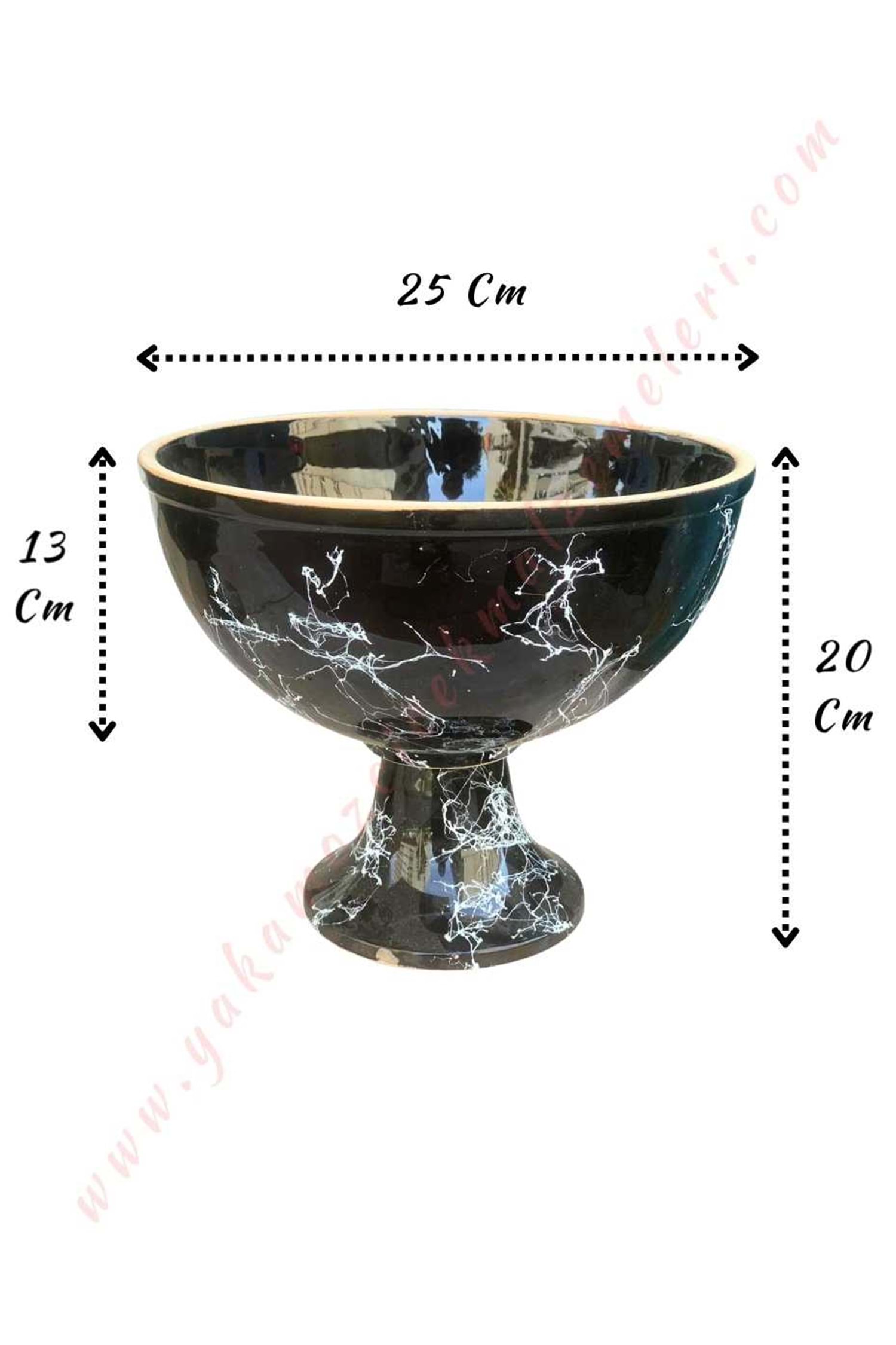 Ayaklı Seramik Büyük Boy Saksı Kupa Çap 25 Cm Yükseklik 20 Cm - Siyah