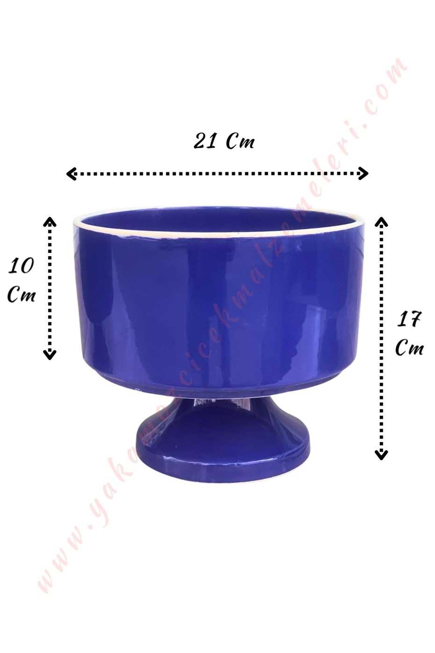 Ayaklı Seramik Çanak Vazo Çap 20 Yükseklik 17 Cm Derinlik 10 Cm - Mavi