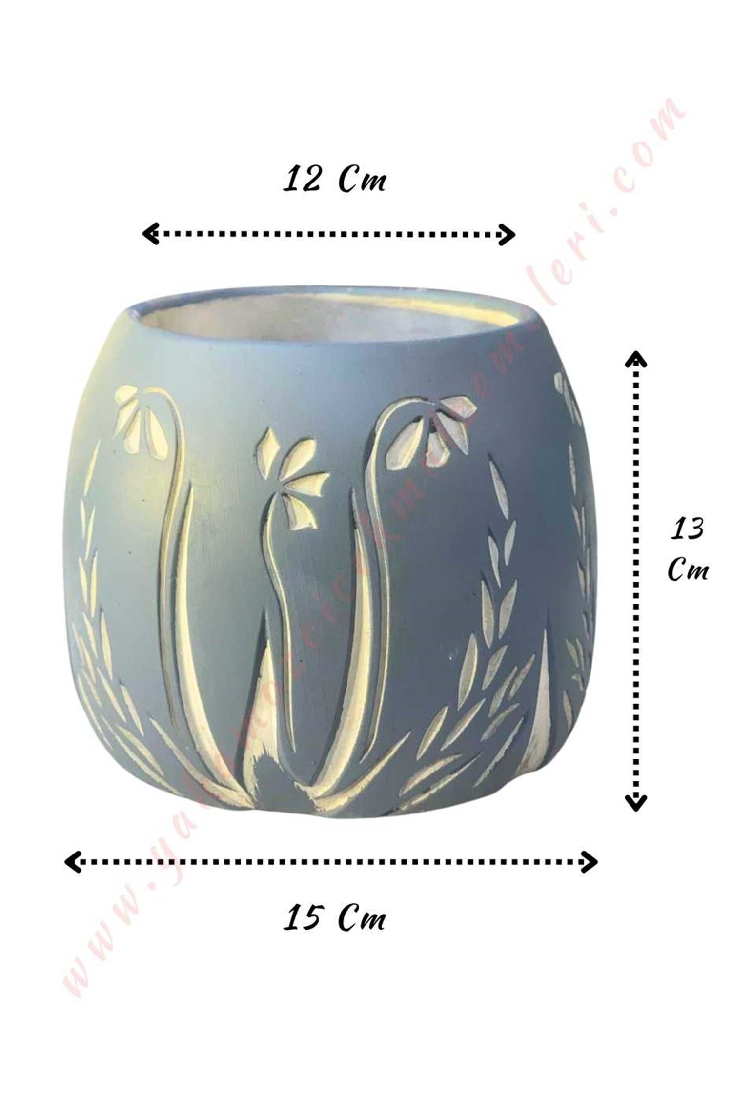 Çiçek Desenli Beton Saksı Yüsra Çap 15 Cm Yükseklik 13 Cm - Gri