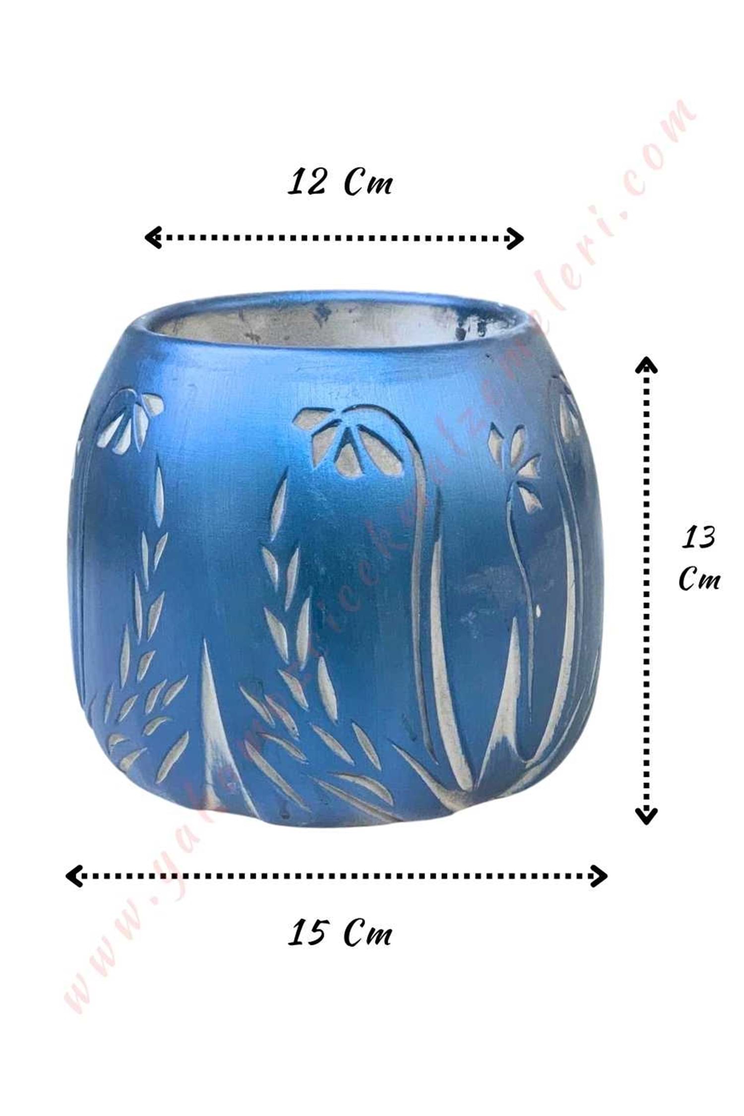 Çiçek Desenli Beton Saksı Yüsra Çap 15 Cm Yükseklik 13 Cm