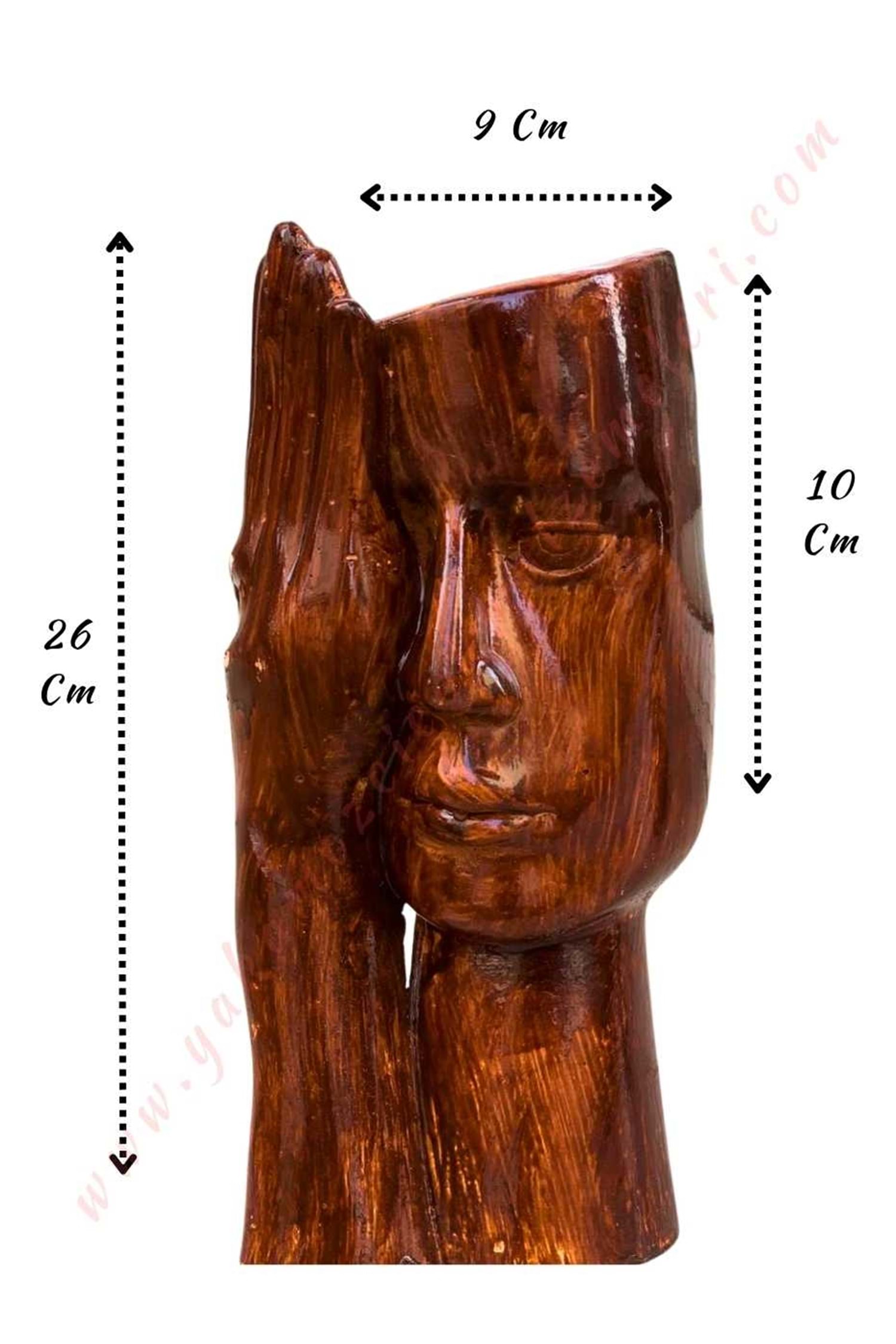 Eli Yüzünde Kadın Beton Saksı İç Çap 9 Cm Yükseklik 26 Cm Derinlik 10 Cm - Kahverengi