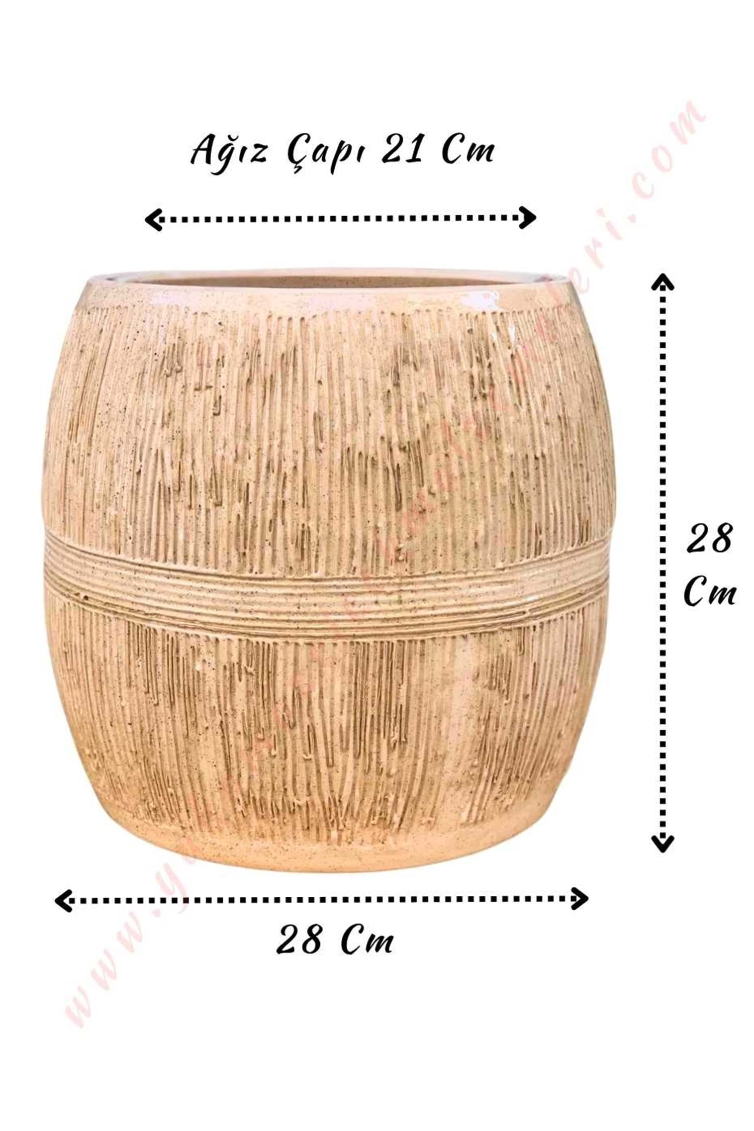 Seramik Fıçı Saksı Çap 28 Cm Boy 28 Cm