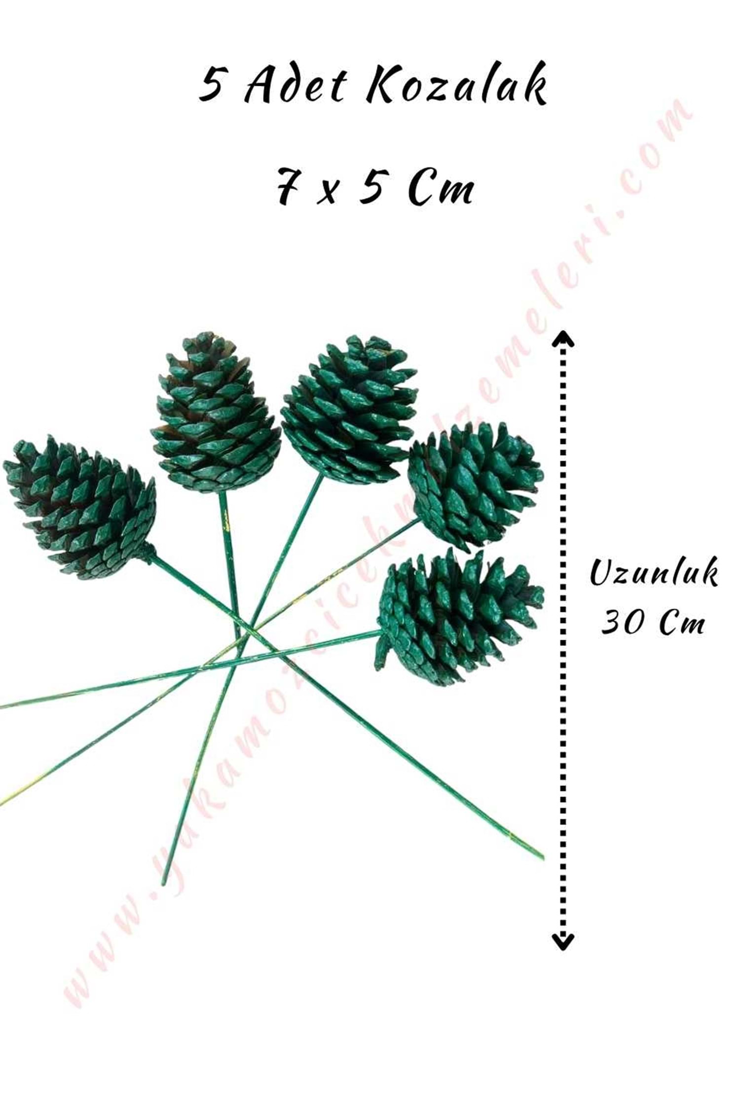 Dekoratif Renkli Kozalak 5 Adet 7*10 Cm - Koyu Yeşil