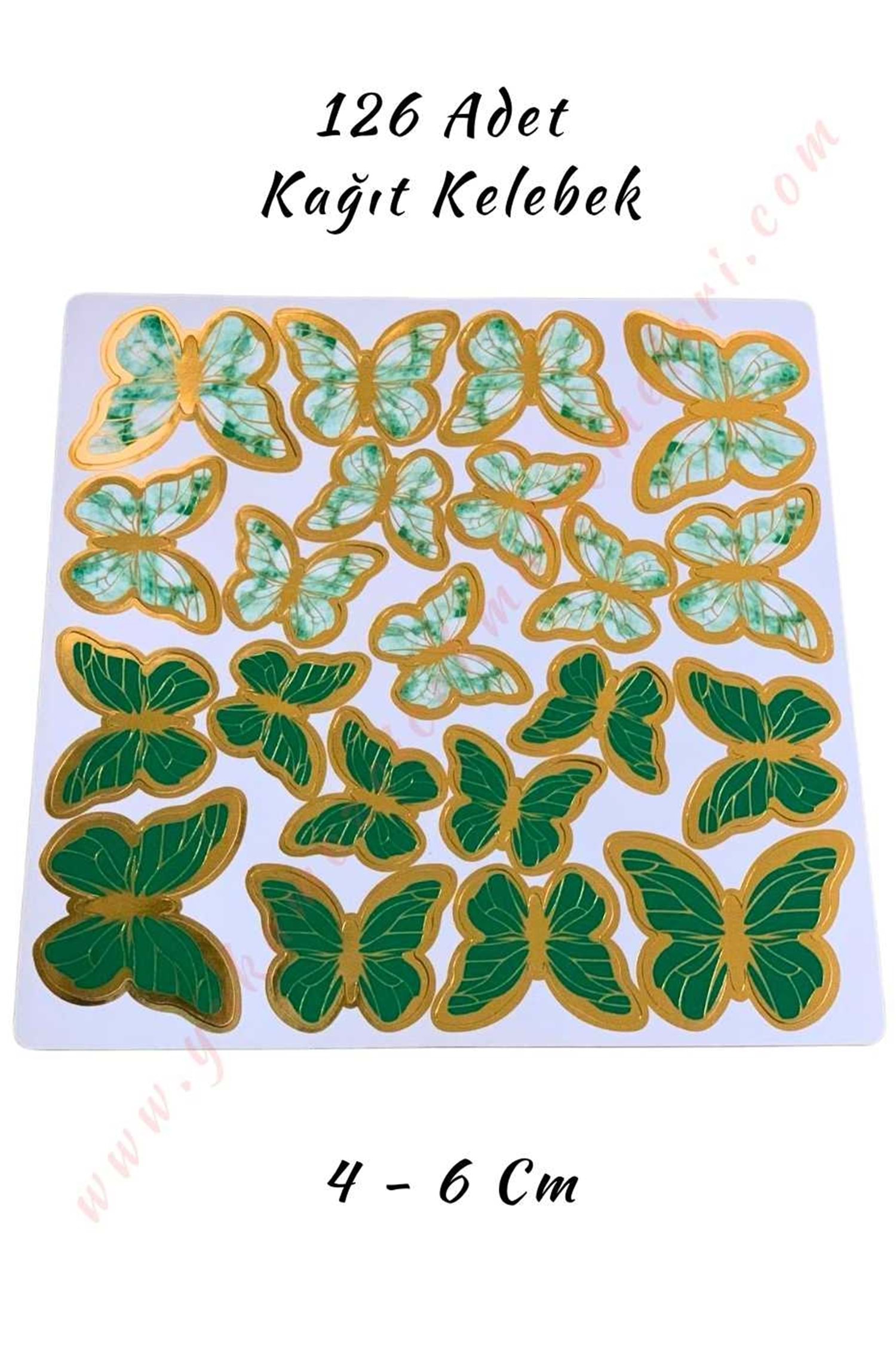 Kağıt Kelebek 126 Adet 4 - 6 cm Buket - Teraryum Süsleme Malzemesi - Yeşil