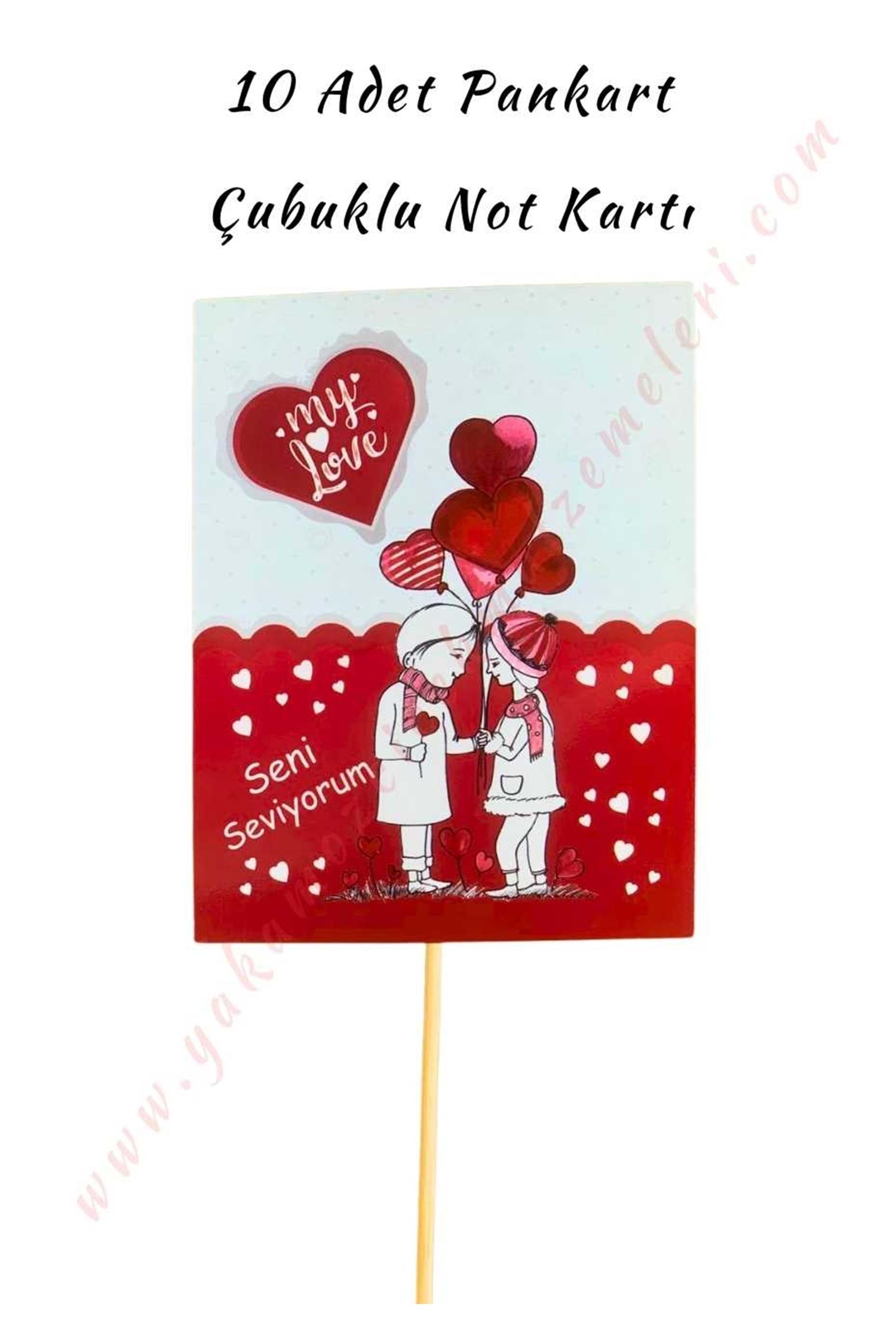 10 Adet Pankart - Çubuklu Not Kartı - Seni Seviyorum