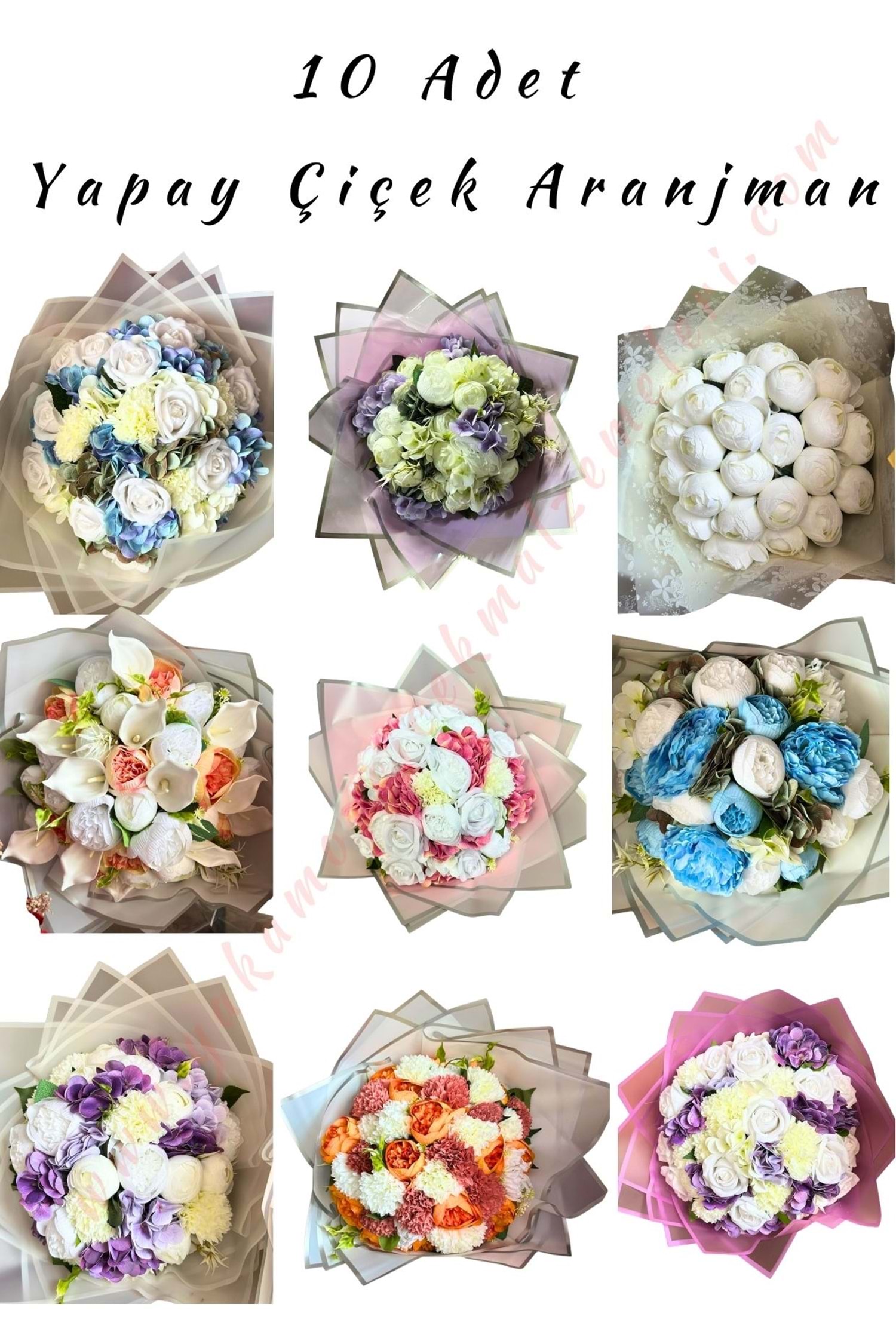 10 Adet Yapay Çiçekler İle Oluşturulmuş Buket Aranjman