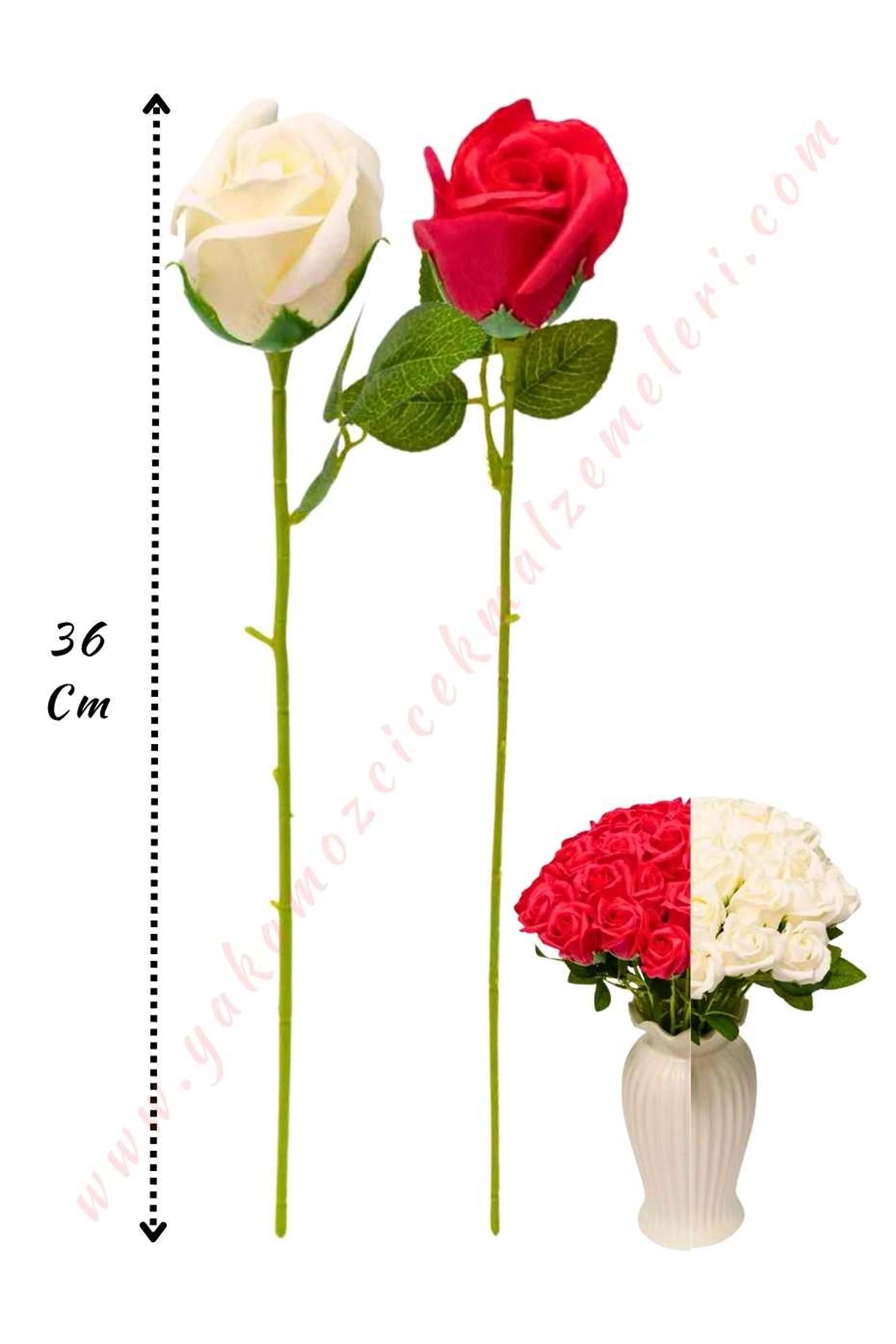 50 Adet Dallı Sabun Gül - Kırmızı-Beyaz 692-1